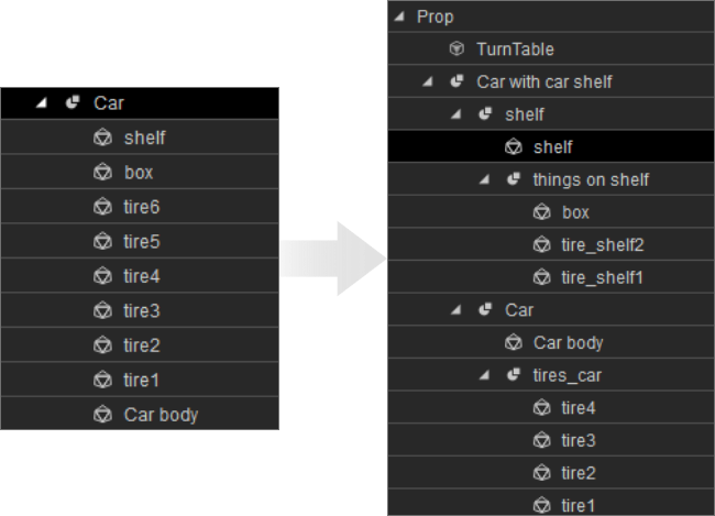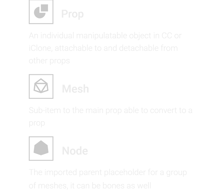Other than a single piece of mesh, a 3D prop can contain multiple sub-items with node hierarchies, or bone rigs.