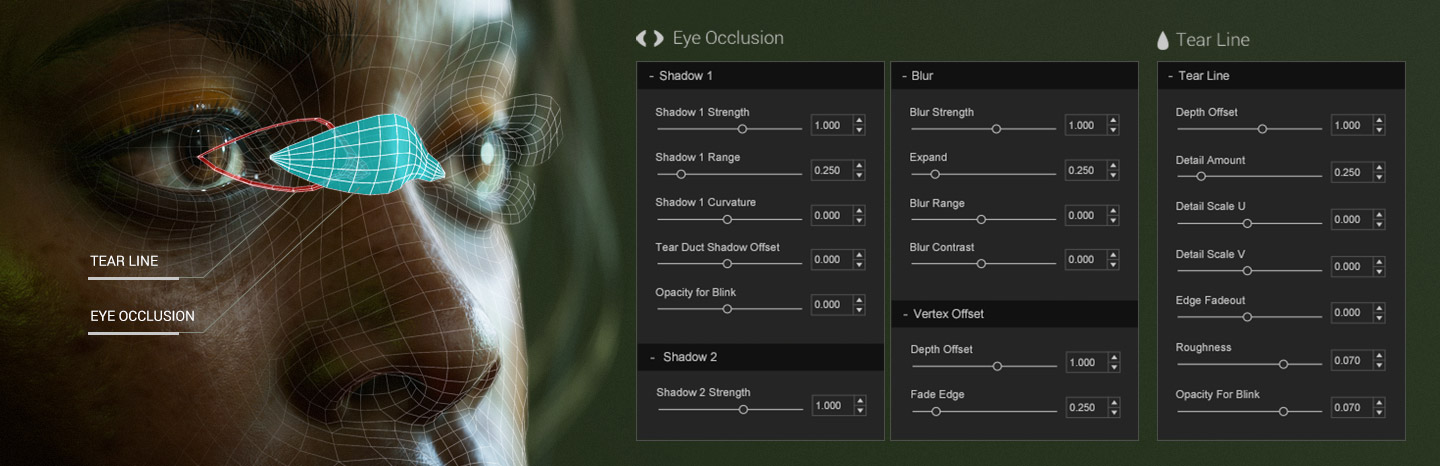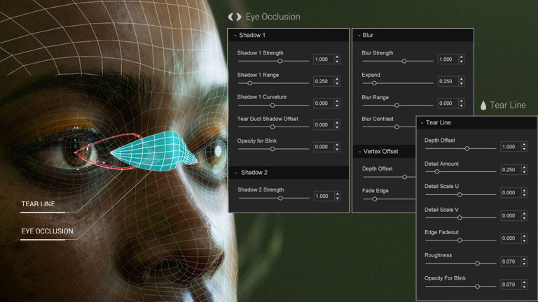 Tear line and occlusion mesh bring extra depth and vitality to the eyes.