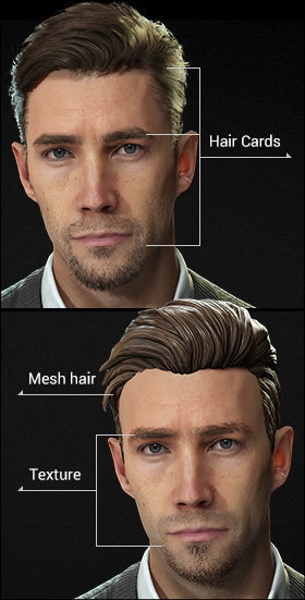 During the ActorBUILD conversion process, the CC character base is replaced by 10k topology derived from Game Base and retains 101 bones for full-body, LOD-based animation in 3D platforms like Omniverse and Unreal Engine. To further optimize for crowd simulation, designers need to manually reduce outfit resolution, replace hair cards for mesh hair, and apply texture atlases to consolidate PBR materials. Once the conversion process is complete, an ActorBUILD character will be extracted from a fully-dressed CC character with a ten-fold reduction in file size.