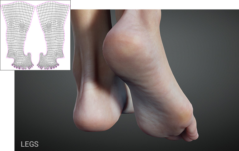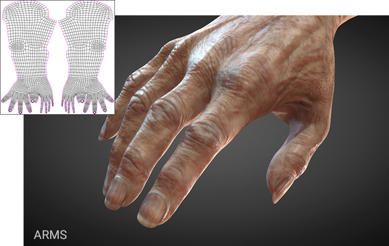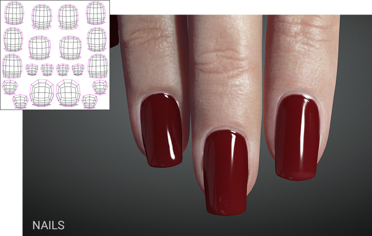 Access a whole new range of highly realistic, dynamic skin assets ranging from full-body skin presets to individual material effects. Customize the look with muscles, wrinkles, pores, color variation, scalp, body hair, nails, blemishes, and acne; overlay effects with acquired art from imported images for suntan, wounds, scars, tattoos and more.