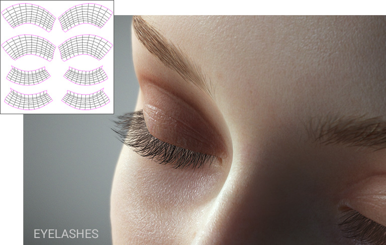 Access to a whole new line of dynamic makeup assets from Content Library, ranging from full makeup presets to part effects, which include foundation, eyebrow, eyeshadow, eyeliner, lips and war paint. Morphable eyelash options are also included.