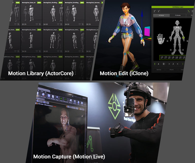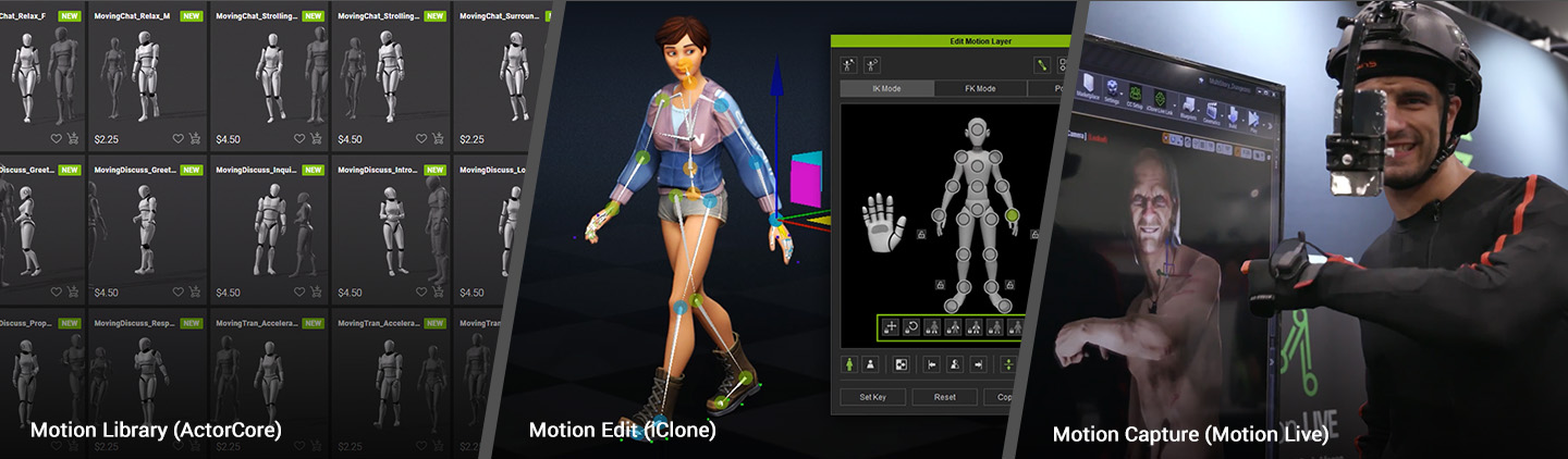 Bring your ZBrush models to life with just a few clicks. Send your CC character to iClone for motion editing and apply top-quality mocap or premade animations. Actorcore hosts thousands of stylized and realistic animations, hand keyed by professional animators or motion captured from top performers.