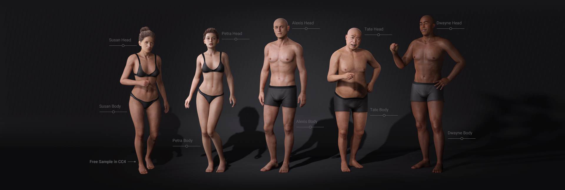 These four characters not only boast remarkable facial features but also come with body shapes that perfectly match each individual. Users have the flexibility to independently adjust head and body morphs, allowing for endless creative possibilities and a wide range of character variations.