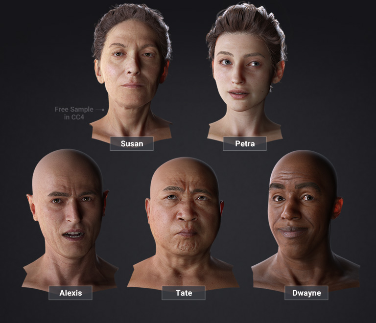 Experience the pinnacle of realism with the new VFace character series, delivering the utmost quality in lifelike characters created with Headshot 2.0 Mesh Workflow. This extraordinary collection features four meticulous CC3+ avatars that offer dedicated expressions and wrinkle patterns. Unlock the ability to craft mesmerizing character animations that captivate and inspire.