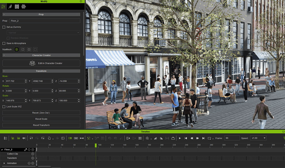 Generate realistic masses with detailed facial expressions, accessories, and diverse animation styles using iClone. Seamlessly batch transfer these assets to 3ds Max in the same placement for final rendering. iClone Crowd Sim