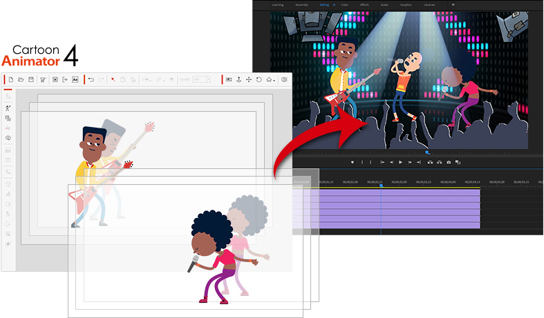 Choose to send CTA projects to Premiere Pro, VEGAS Pro, HitFilm and Motion 5. The animated objects can be individually exported to the video editor from CTA to speed up your final production.