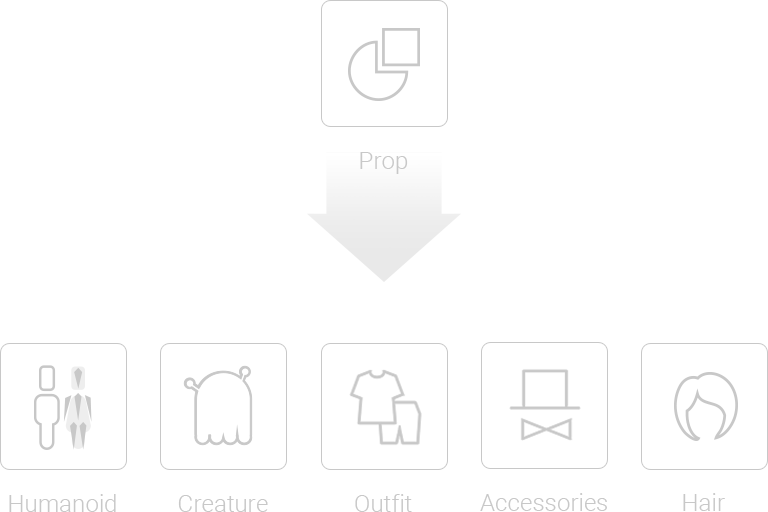 Never underestimate the power of a 3D prop, it can be turned into a character, a piece of cloth, an accessory, or even hair. Users can separate mesh nodes of a prop to make it animatable, edit prop shape, change the materials, or make props real-time friendly with polygon reduction.
