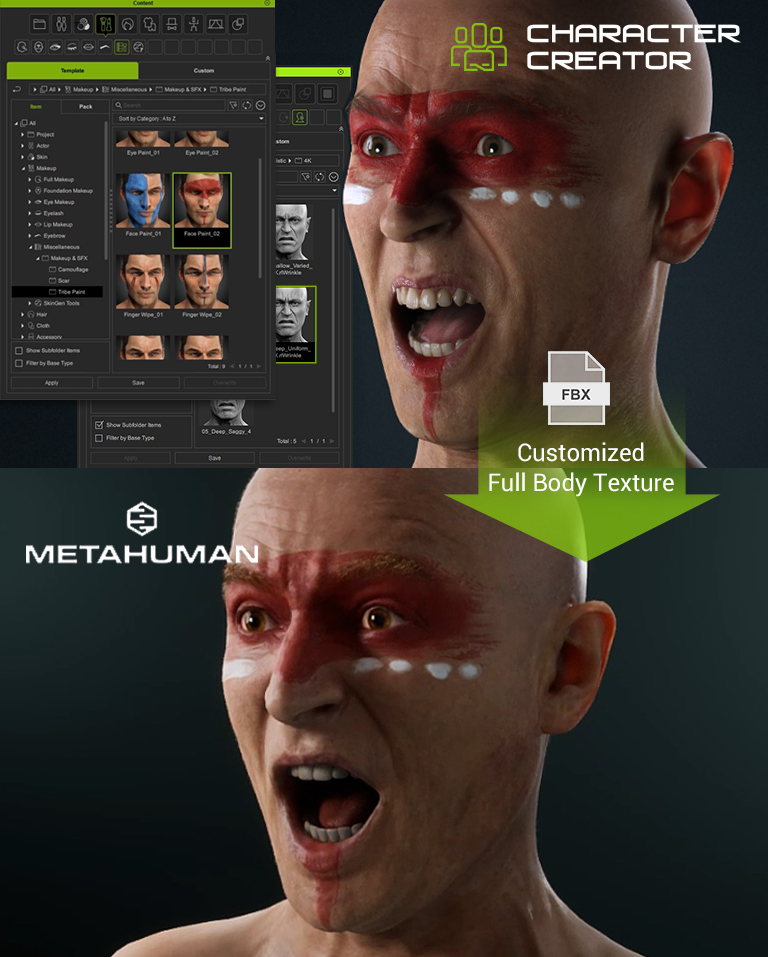 Creating your MetaHuman avatars with realistic features has never been easier, thanks to CC's latest Head Export feature. With just a push of a button, you can effortlessly transfer CC head shapes and 4K head and body textures. Elevate your MetaHumans to a new level of authenticity with CC's unparalleled true-to-life features.