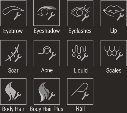 Specifically designed for generating specific parts of body such as lips, eyebrows, hair, or dedicated effects like scars, scales, acne, and liquids.