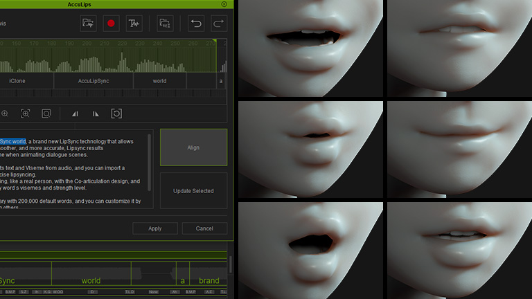 The best way to generate your own facial motion capture from live video, sports cameras, mobile phones, and recorded video. With AcculIPS enhanced, you can smoothly synchronize facial movements with voice input, fine-tunes lip and tongue articulation. Liberating animation productivity from equipment dependencies and the restrictions of time or location!