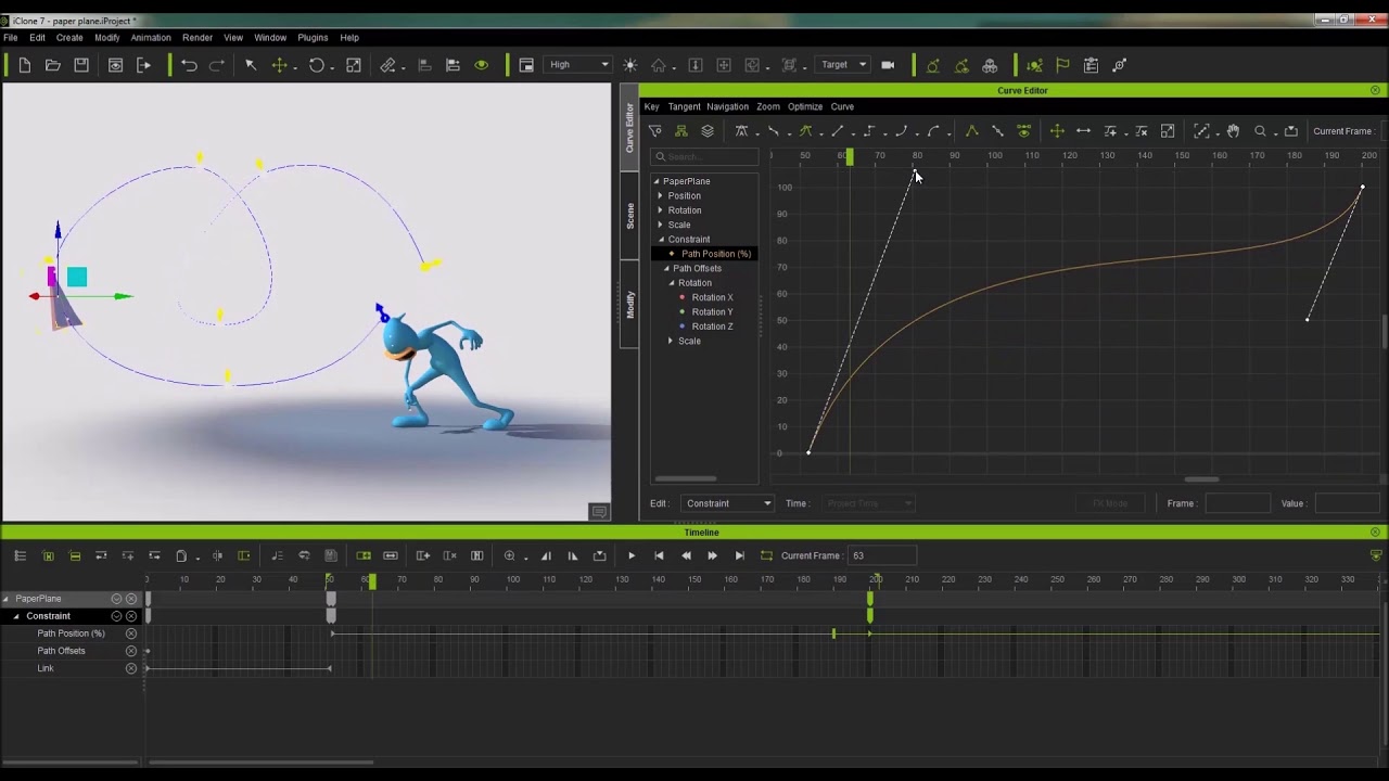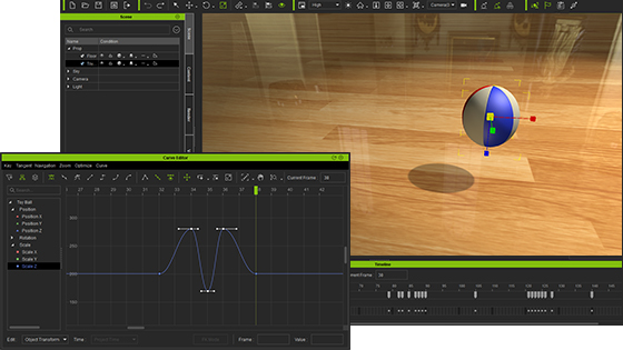 The support for path animation in Curve Editor grants professional power over the timing of objects moving along a trail. Besides creating dramatic cartoony physics, it can also simulate realistic local transformations for the likes of cars, planes, birds, fishes, and other creatures.
