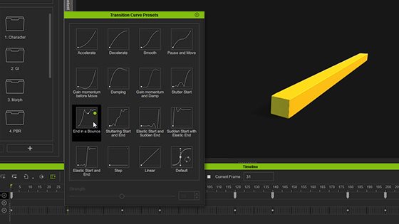 The Curve Editor allows you to adapt all the skills of classic animation principles to your iClone animations. Select a motion clip or a section of keys from the timeline and start applying curves to achieve the best animation performance. Exercise full control over time and space adjustments in your animations, create smooth and cinematic cameras, perform arc rotation for cartoon animation, and achieve the perfect ease-in and out behavior!