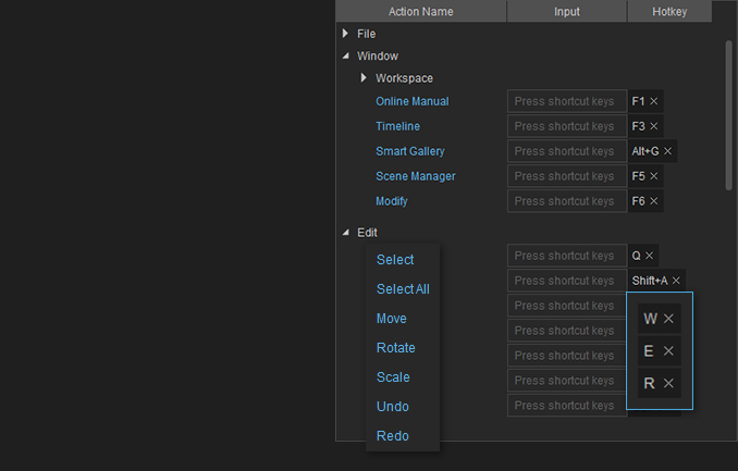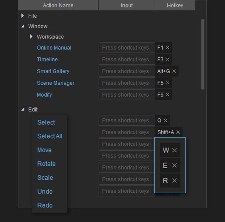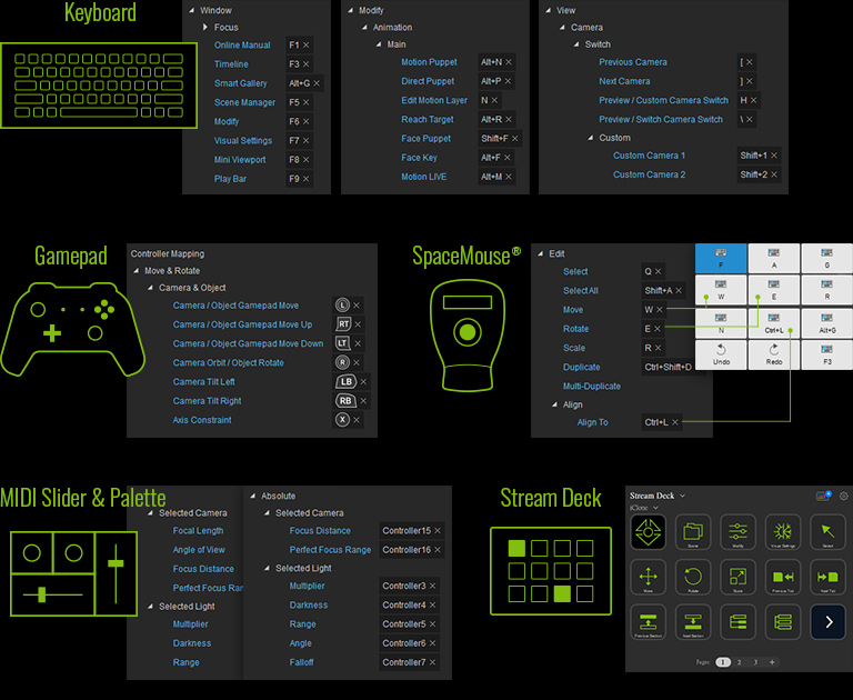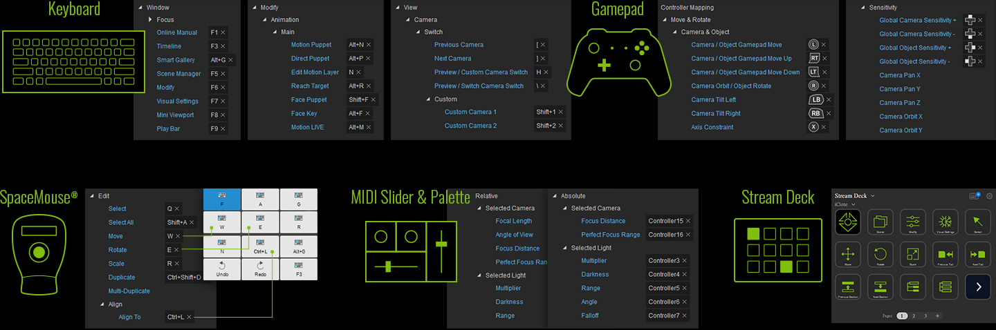To make iClone more user driven, almost all iClone functions can custom map to user defined hotkeys, especially Windows compatible devices. This open design will fundamentally change the way people work with iClone, or Live Link animation to other 3D tools.