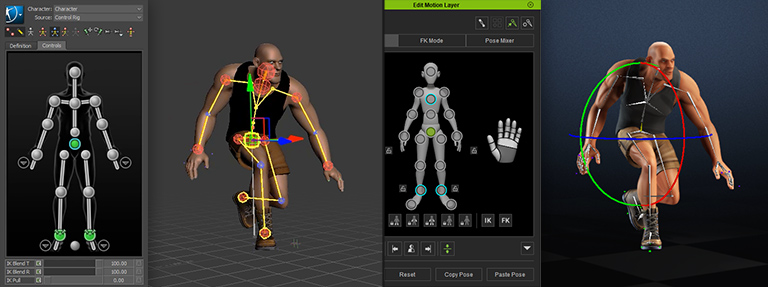 - Motions in industry-standard formats can be quickly applied onto the characters via simple drag and drop. - Applying the same motion to similar body types is simple. Applying to different body types requires manual retargeting. |