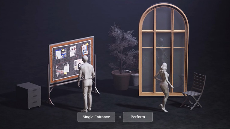 iClone "Turn to Stop" and "Multiple Entry" functionality simulate natural human behavior in approaching and engaging with a target prop. This includes slowing to a stop, making a turn, and approaching with measured pace, distance, and orientation. MD props take care of the rest with smooth and natural interactive motions that are tailored to the gender and characteristics of the engaging actor.