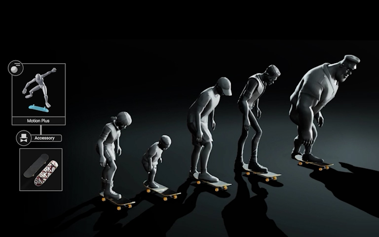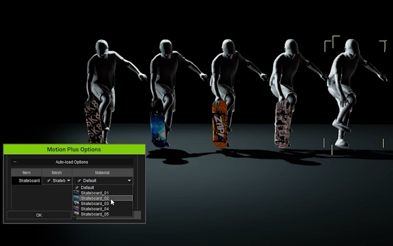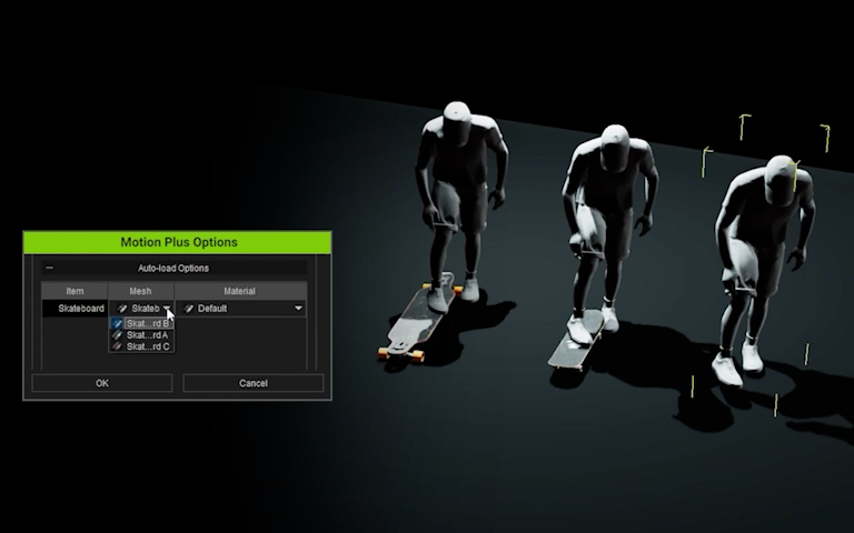 iClone Motion+ (Motion Plus) is an advanced animation format that integrates facial performances and metadata for attached accessories. It supports a variety of sophisticated animations, including cycling and skateboarding. Motion+ features automatic accessory attachment, model and material randomization, and precise motion and accessory alignment via motion editing.