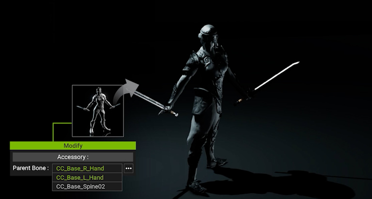 The iClone Smart Accessory system simplifies the entire process of editing motions and loading accessories. It is now possible to spawn a crowd of characters with unique accessories for each individual, automatically associate mocap motions with prop animations like skateboarding, or trigger MD performances for held objects.