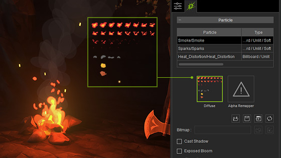 By changing the resource files and altering attributes of a particle, you can get amazingly different visual results. Users are free to set any mesh as your emission source, create realistic dynamic particles out of custom sprites, and define how they wish to emit the particles using texture maps.