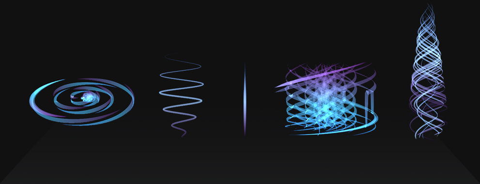 See how these big shape differences are derived from the 3 Ribbon modes, and how the Circular Radius, Spin Speed, and Radius Increment drive their secondary behaviors.