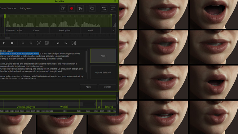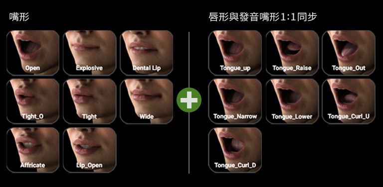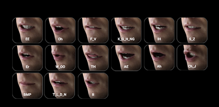 嘴巴形狀自訂功能用於 CC 替身及「人形」角色。依預設,所有 CC 角色皆支援 8 唇形加 7 舌形的「音素配對」。想要帶入自訂掃瞄模型或風格化角色的設計師則可得利於更易對應的 1:1 嘴型(單音單形)。 >> 請參閱 iClone AccuLips 頁面及 2021 對嘴動畫大賽使用者作品。