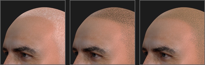 適合剃頭風格或禿頭使用的頭皮貼圖。編輯貼圖來自訂樣貌。