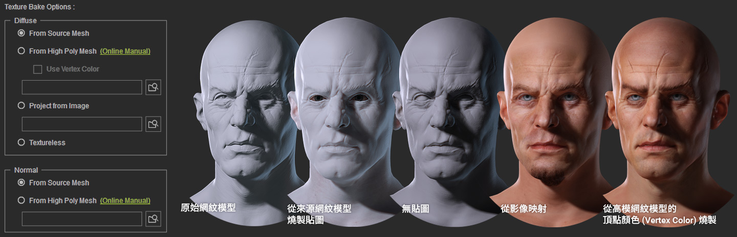 | 影像作業流程: 自動模式 | 影像作業流程: 專業模式 | 網紋模型作業流程 | |