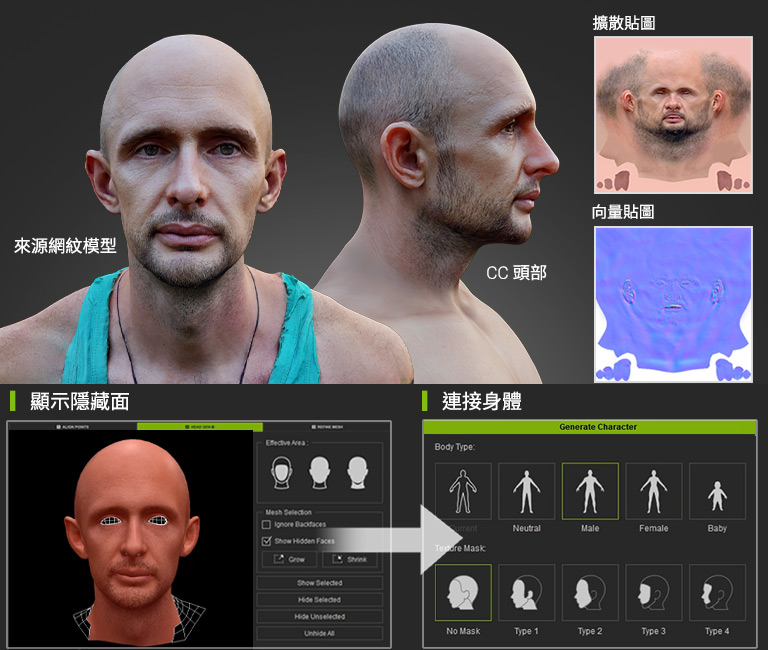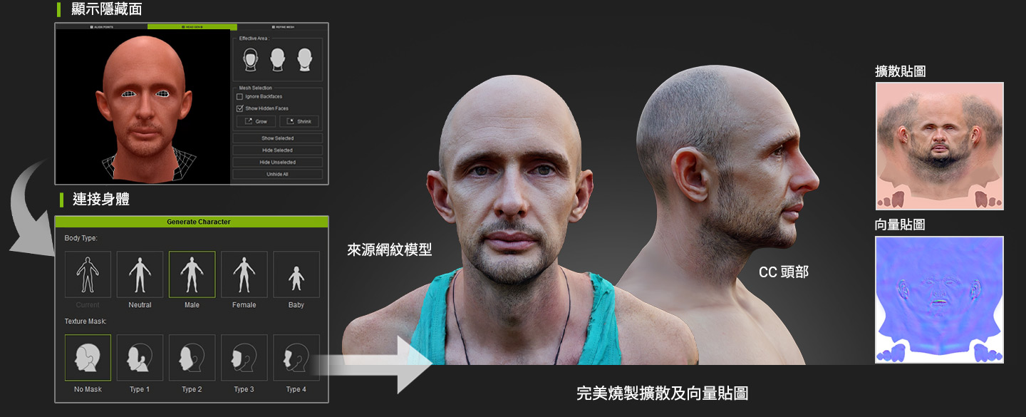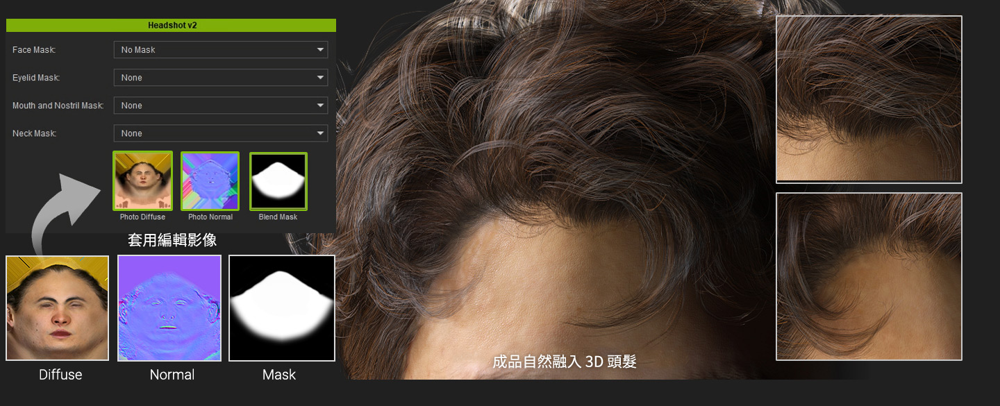 | 簡介 | 3D 頭部與頭髮自動生成 | 對極度細節進行專業調控 |