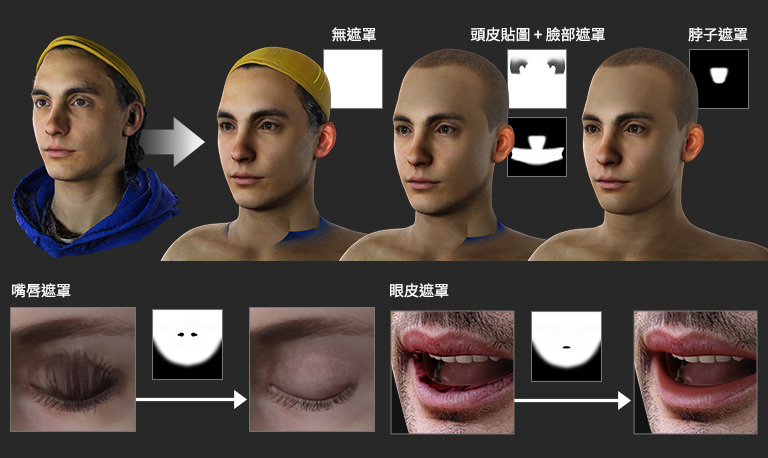 | 目的 | 建立輕量的中遠景虛擬人類模型 | 為特寫鏡頭建立掃描品質的虛擬人 |