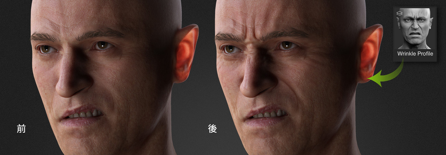 利用高解析的來源影像以及 Headshot Morph 1000+,您可以得到具有 4K 貼圖細節,等同於 3D 掃描品質的數位人臉。額外的貼圖包括法線、AO、粗糙、金屬、SSS 和微觀法線讓數位人渲染更逼真。