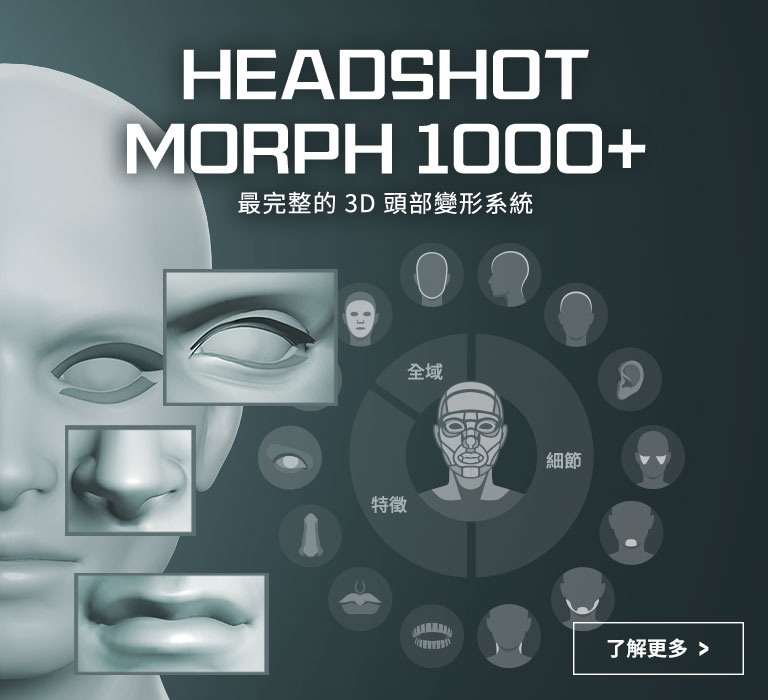 | 造型精修 | Headshot Morph 1000+、塑形變形編輯 | Headshot Morph 1000+、塑形變形編輯 |