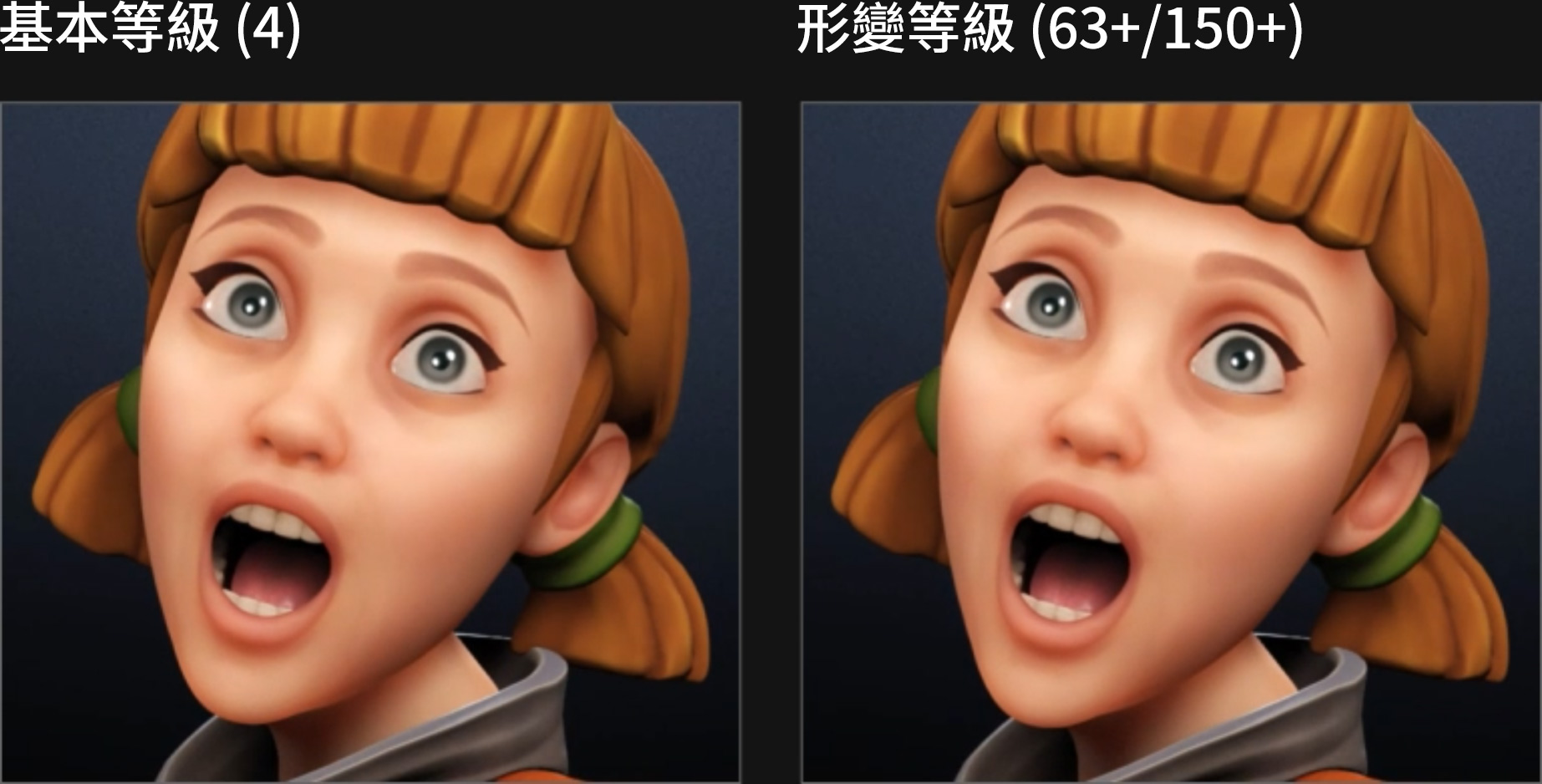 需要用 Character Creator 的可擴展表情系統特定輸出等級時,設計師可輕鬆從角色表情細節的 60 至 140 混合形狀中昇級或降級。