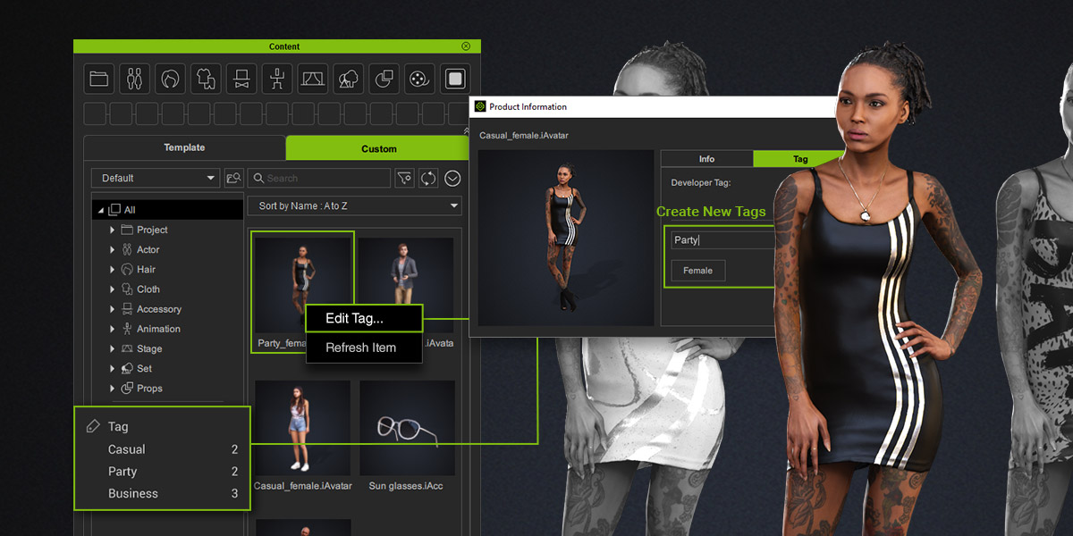 | iAvatar, iCloth, iShoes, iGloves, iHair, iAcc (to Character Creator) | ✓ | ✓ | |