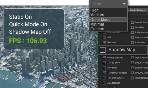 使用「快速模式」並關閉「陰影貼圖」將每秒格率推至巔峰。